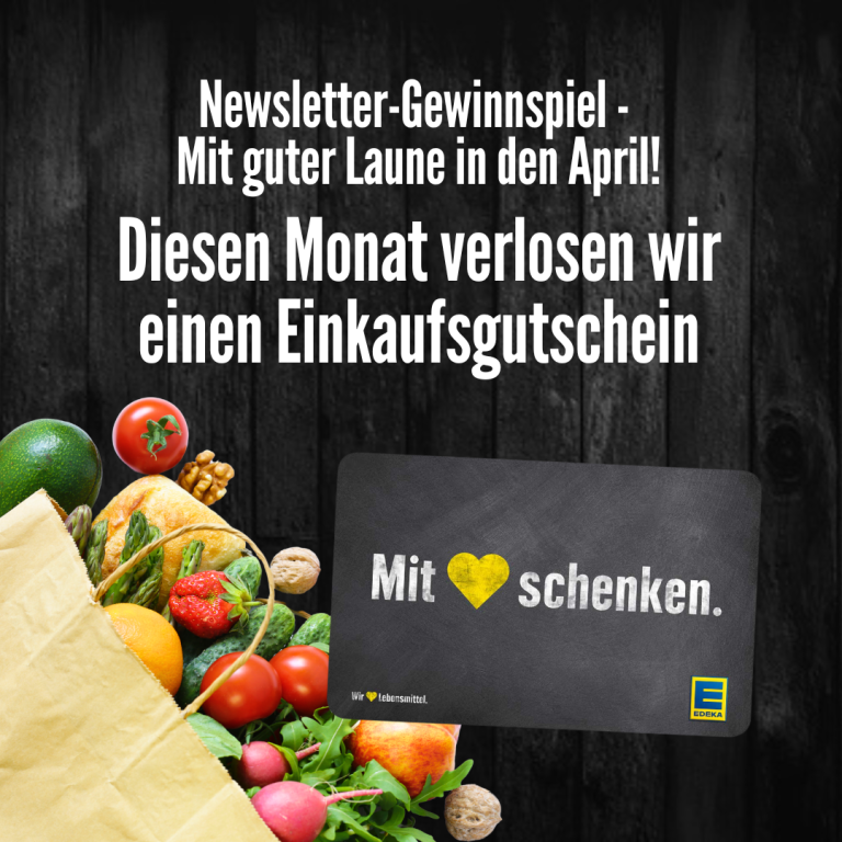 Liebe Kundinnen und lieben Kunden, wir belohnen die Treue unserer Newsletter-Abonnenten und das gibt es zu gewinnen. In diesem Monat verlosen wir einen Einkaufsgutschein im